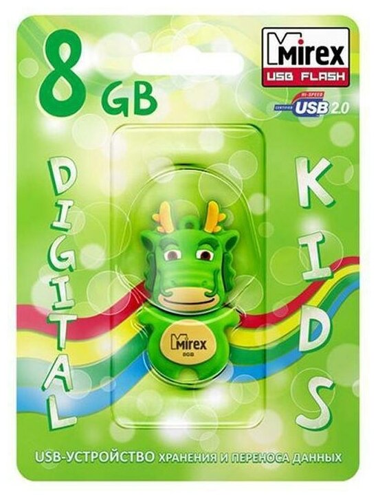 Купить USB флэш-накопитель 8 ГБ Mirex DRAGON GREEN 8GB (ecopack)