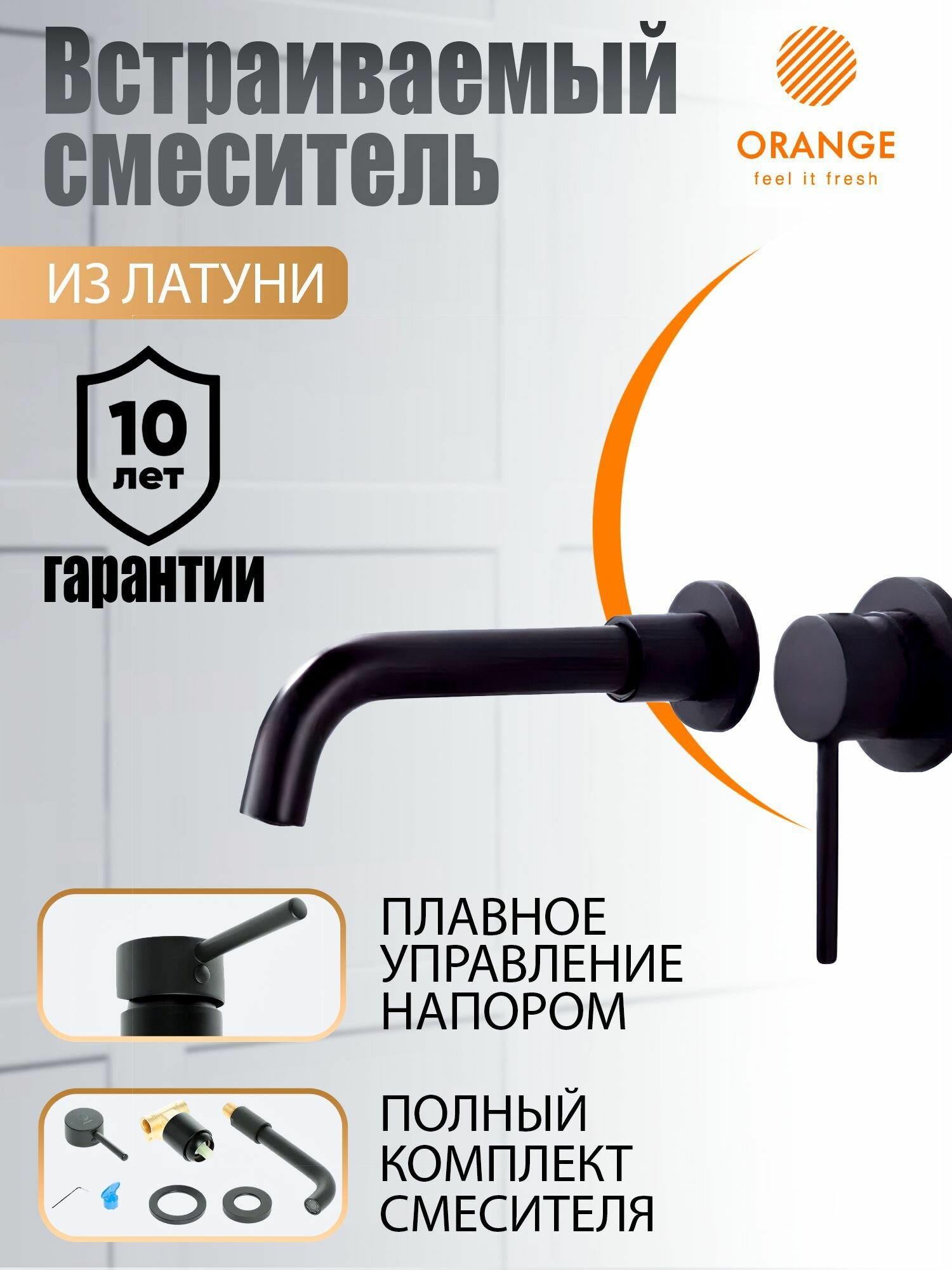 Orange Karl Смеситель для раковины встраиваемый, скрытая часть в комплекте, чёрный матовый. M05-722b