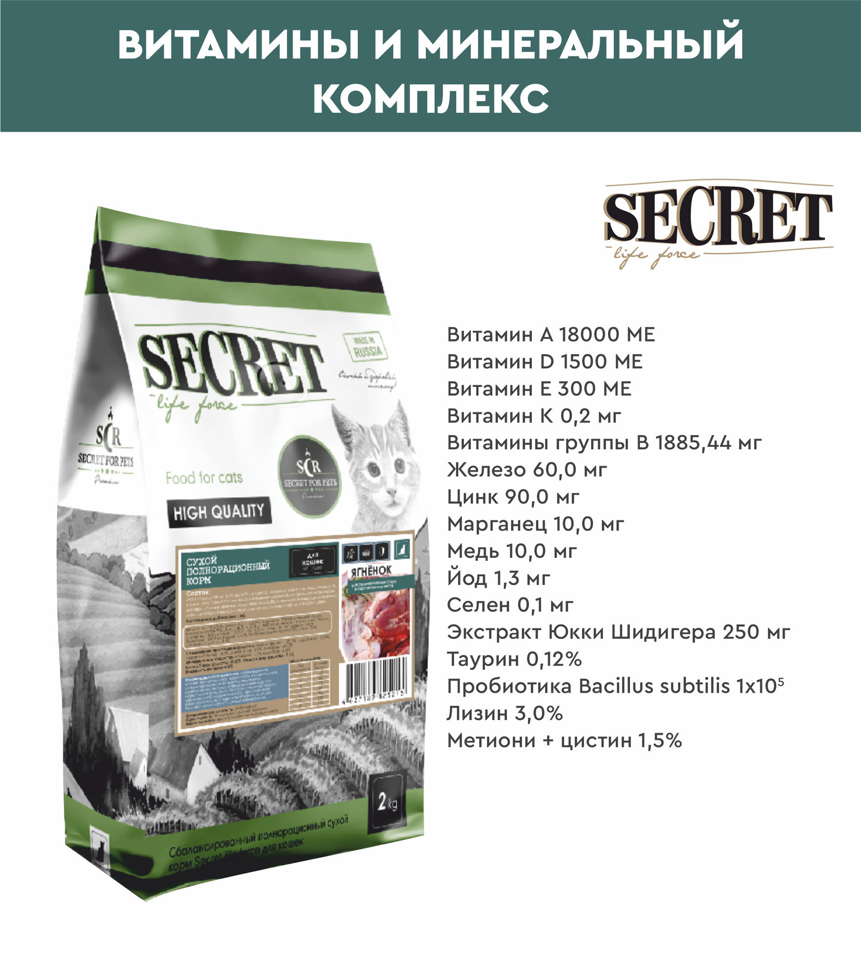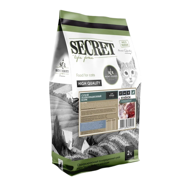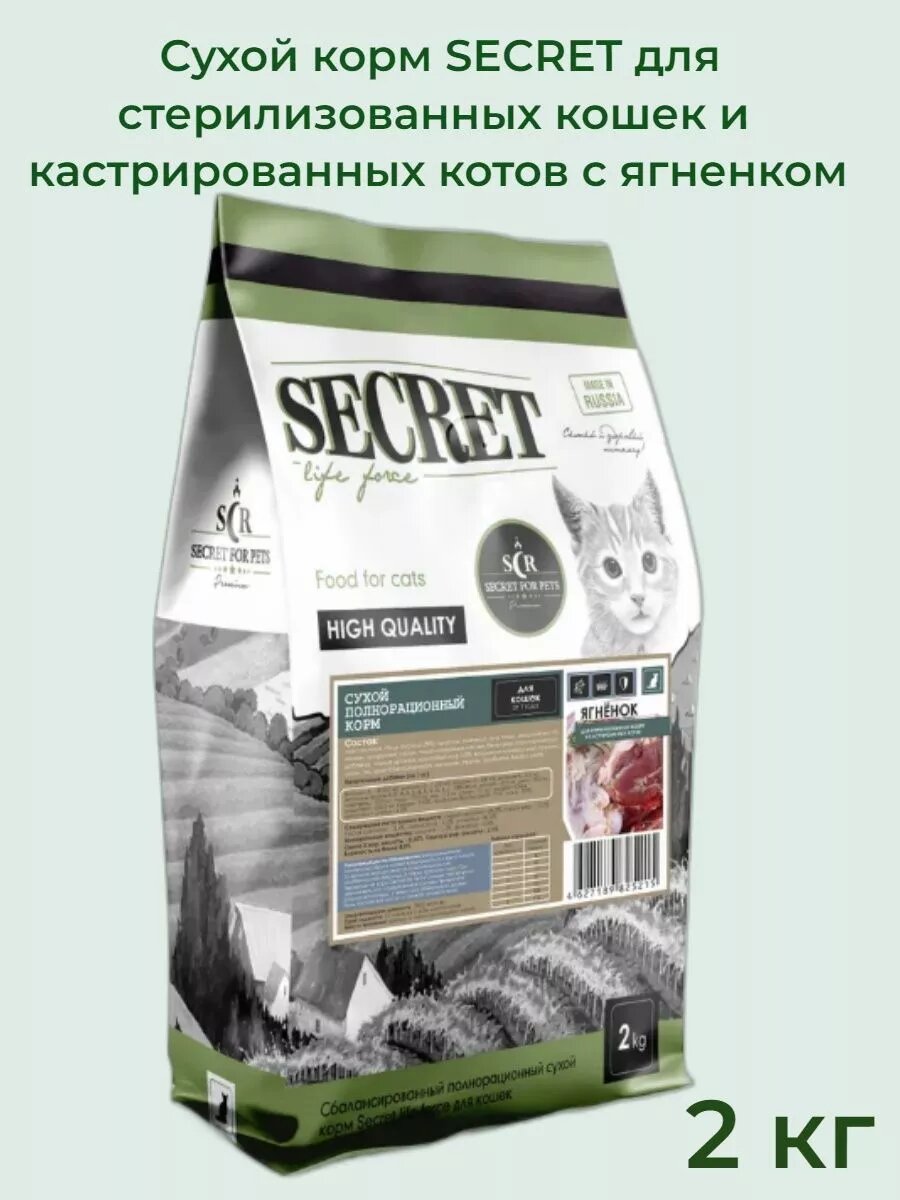 SECRET FOR PETS Корм сухой для стерилизованных кошек ягненок, 2 кг