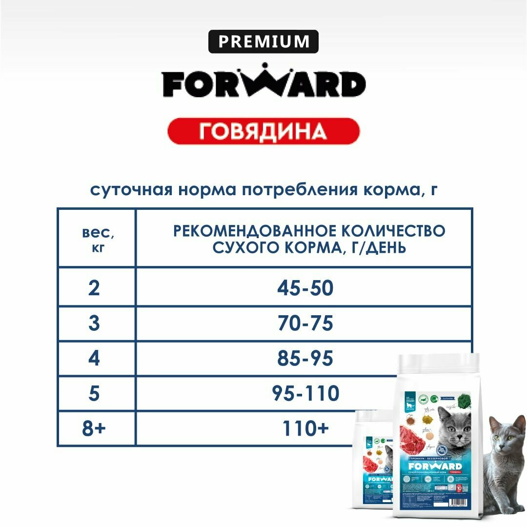 Корм для кошек сухой FORWARD, говядина, беззерновой, гипоаллергенный, 10 кг