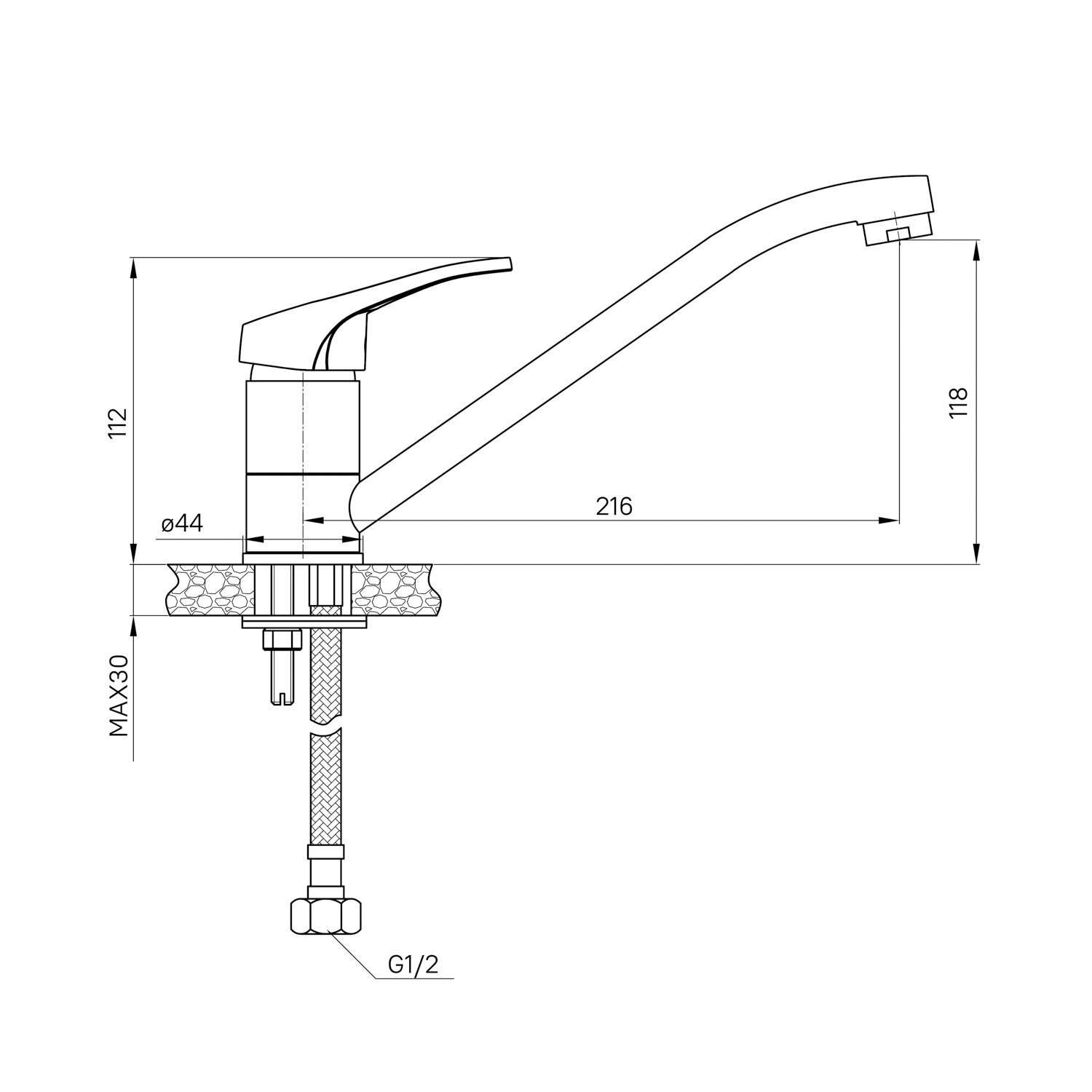 | Длина излива | 216 мм |