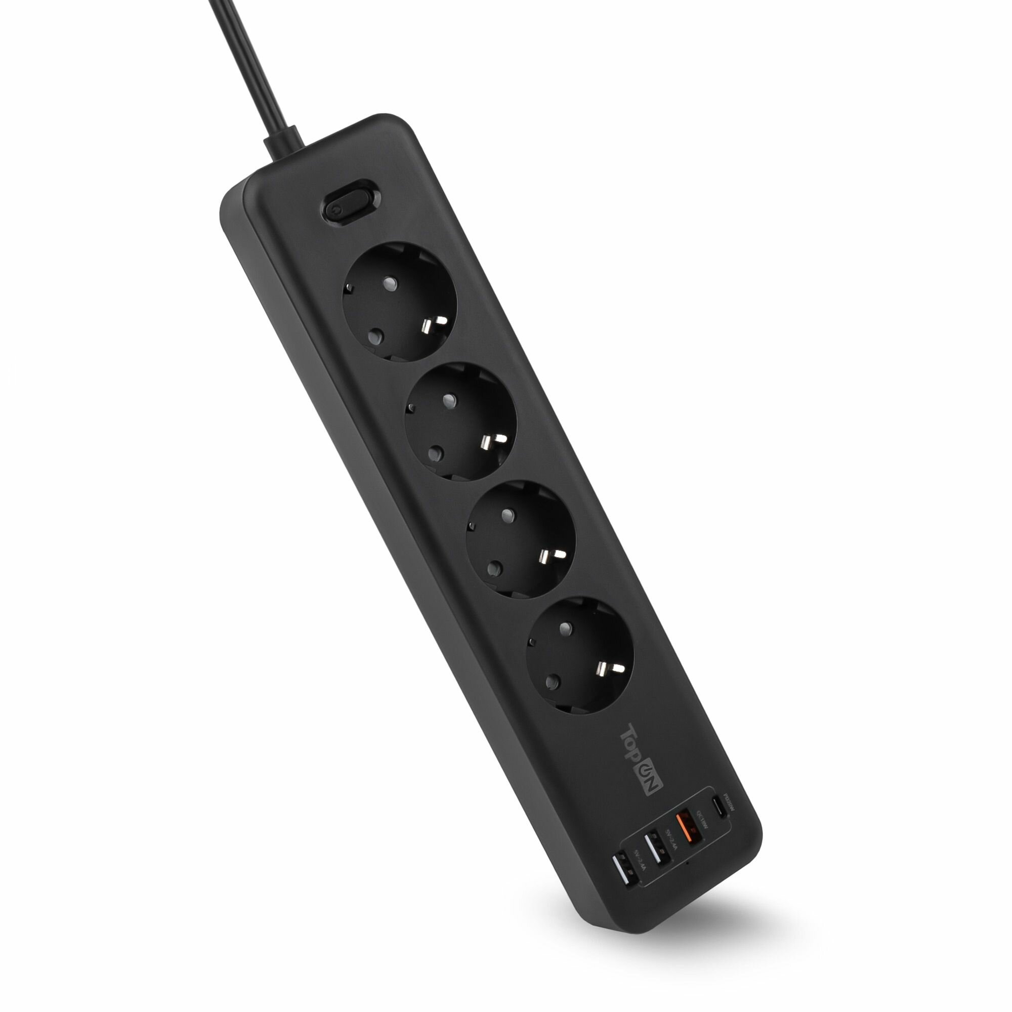 Сетевой фильтр TopOn TOP-PWS4 4 розетки, 3 USB, Type-C, PD 20W QC3.0, 4000W, 1.8 м Черный TOP-PWS4B