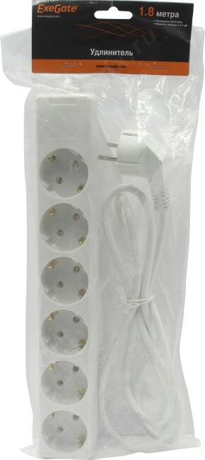 Удлинитель Exegate ECE-6-1.8W (6 евророзеток, 1.8м, белый)