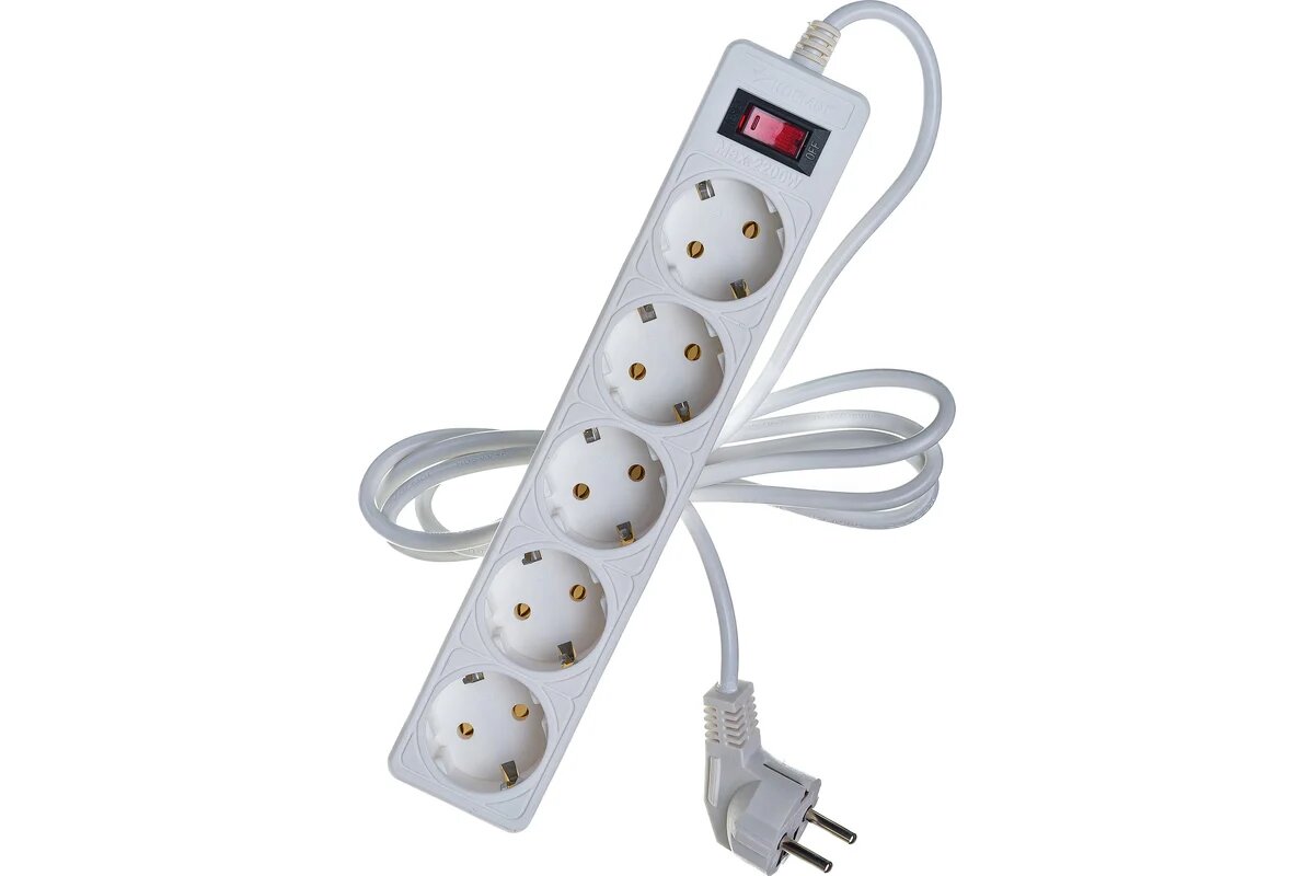 Сетевой фильтр Космос Электро Космос 5х1.8м с заземл. 10А IP20 2.2кВт 3х0.75 индик. сети, белый, FKsm1.8m-5g(W)