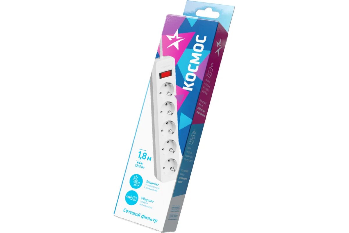 Сетевой фильтр Космос 1 8 м 5 розеток пвс 3х0 75мм2 белый
