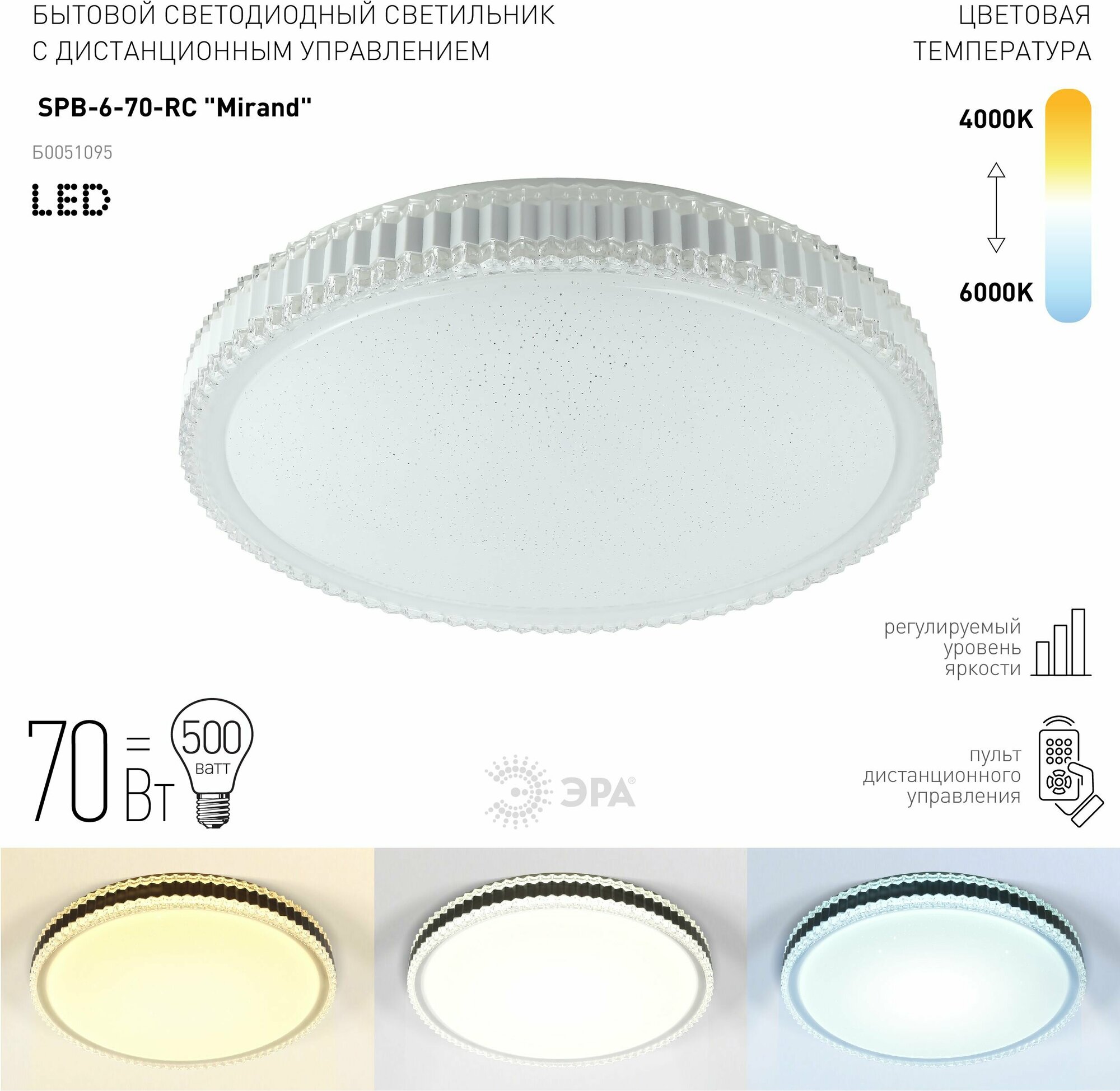ЭРА Светильник потолочный Классик с ДУ SPB-6-70-RC Sance светодиодный с пультом ДУ Б0051098