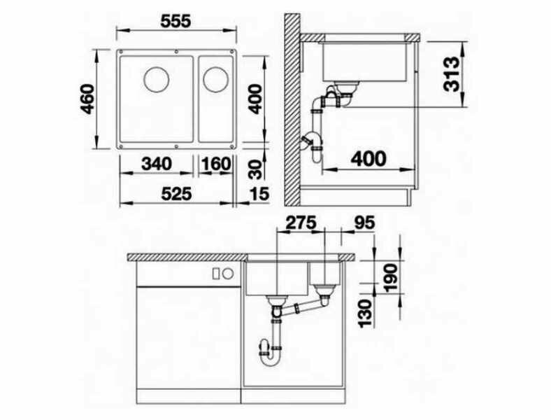 Мойка Blanco 521350 ROTAN 340/160-U шампань Silgranit левая мойка (стоп)