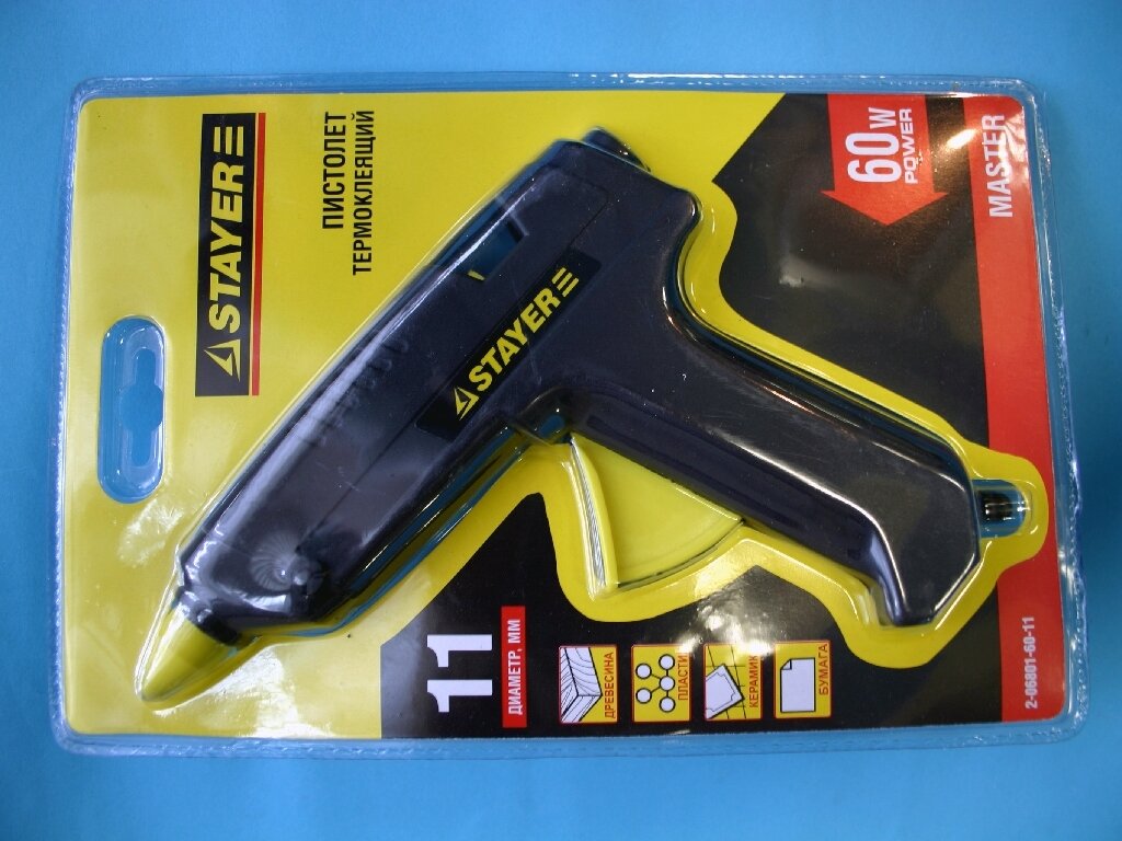 Пистолет STAYER клеевой (термоклеящий) электрический, 60Вт/220В, 11мм(2-06801-60-11_z01)