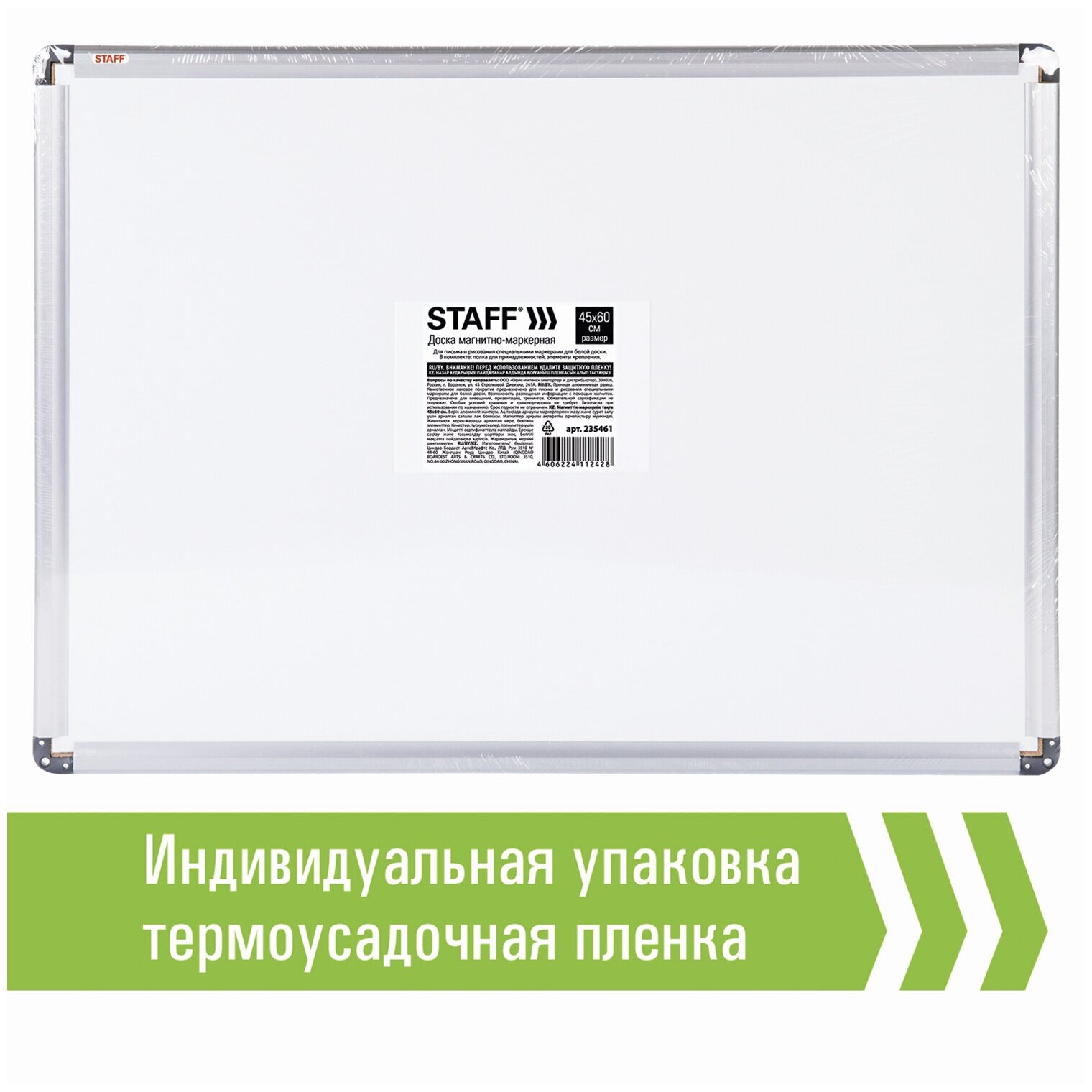 Доска магнитно-маркерная 45х60 см, алюминиевая рамка, гарантия 10 ЛЕТ, STAFF, 235461 - 1 шт.