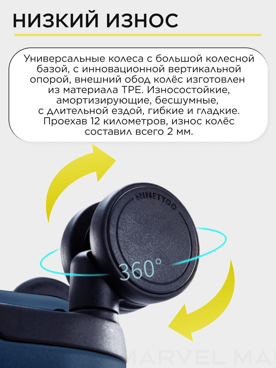 Чемодан Xiaomi NINETYGO Danube 20", серый, пластиковый, 4 колеса, блокировка замков для безопасности