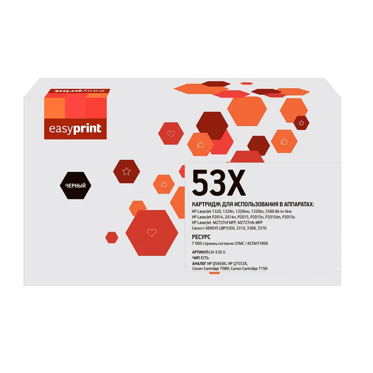 Картридж лазерный Easyprint LH-53X U (Q7553X/Canon 715H/708H) для HP / Canon, цвет черный