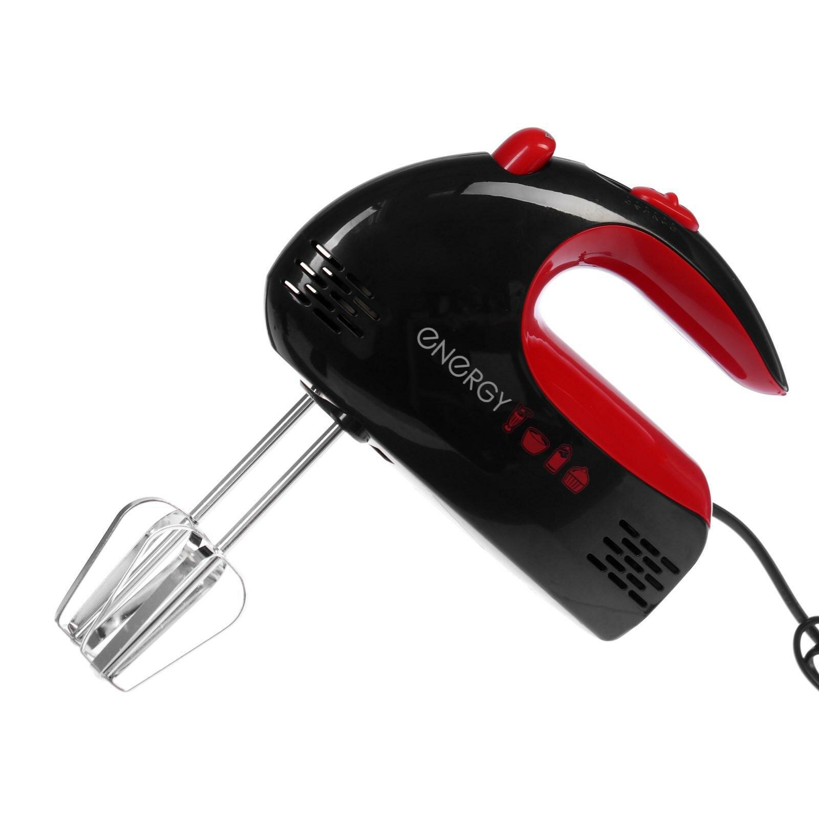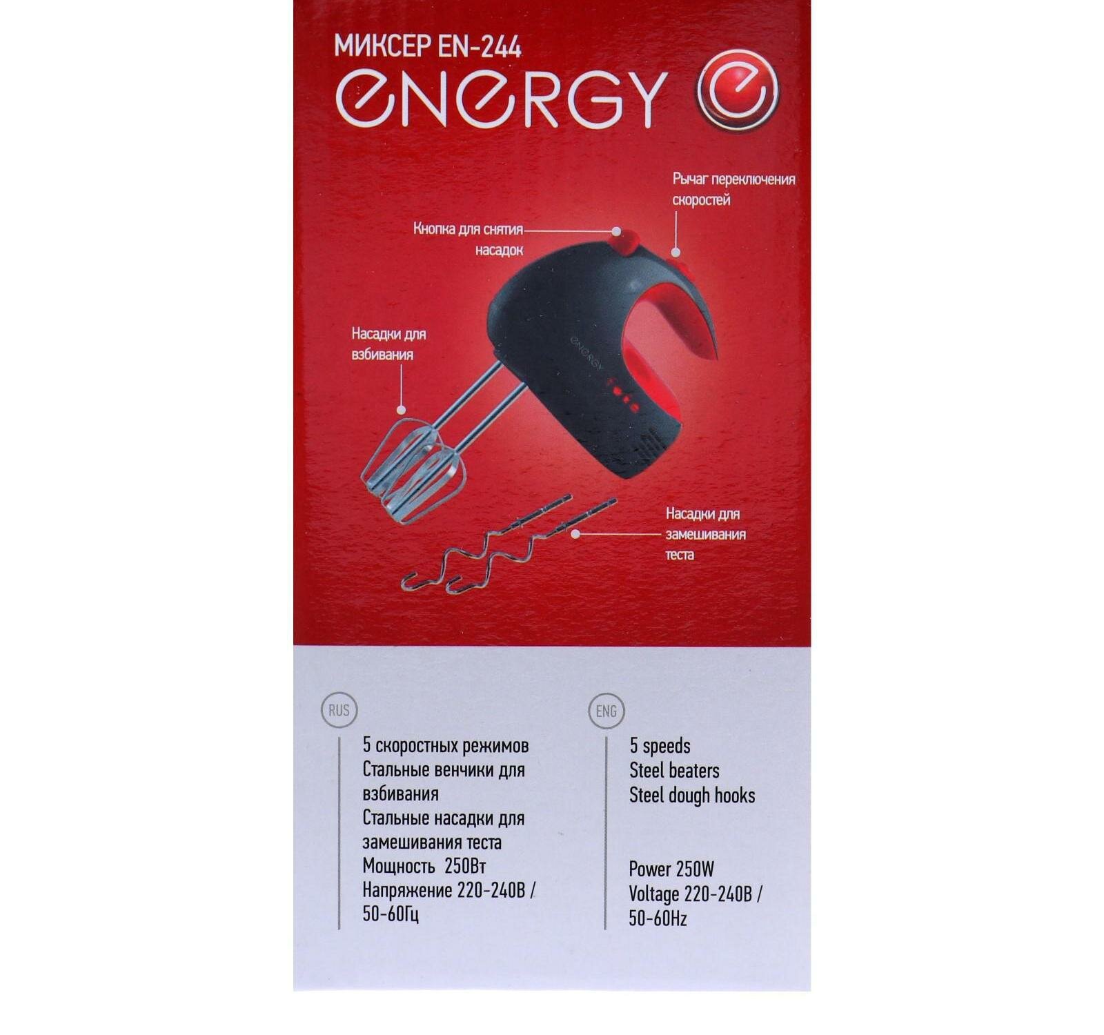 Миксер ENERGY EN-244, ручной, 250 Вт, 5 скоростей, 2 насадки, чёрно-красный