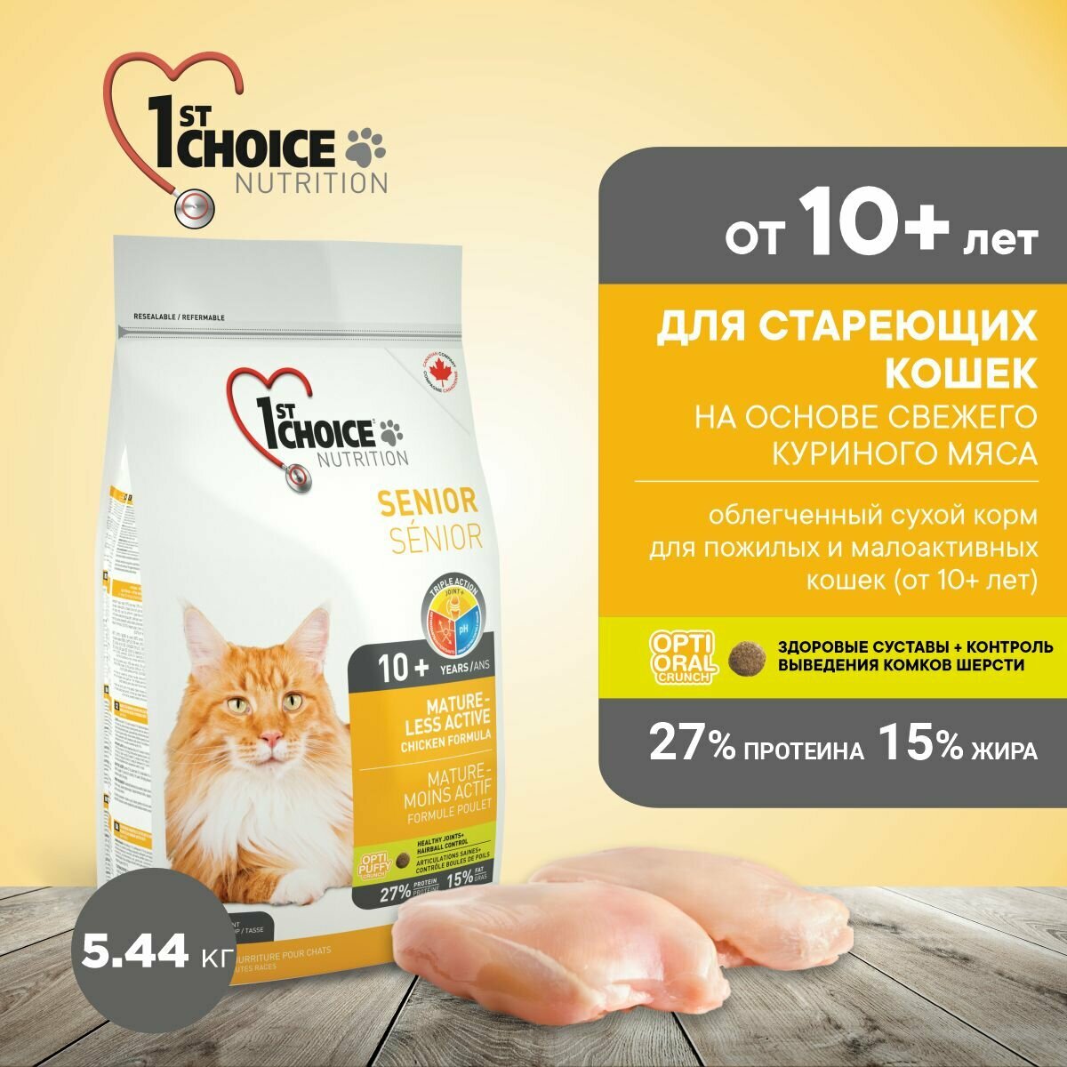 1st Choice - Корм для пожилых или малоактивных кошек, цыпленок (Mature or Less Active ) 5.44кг
