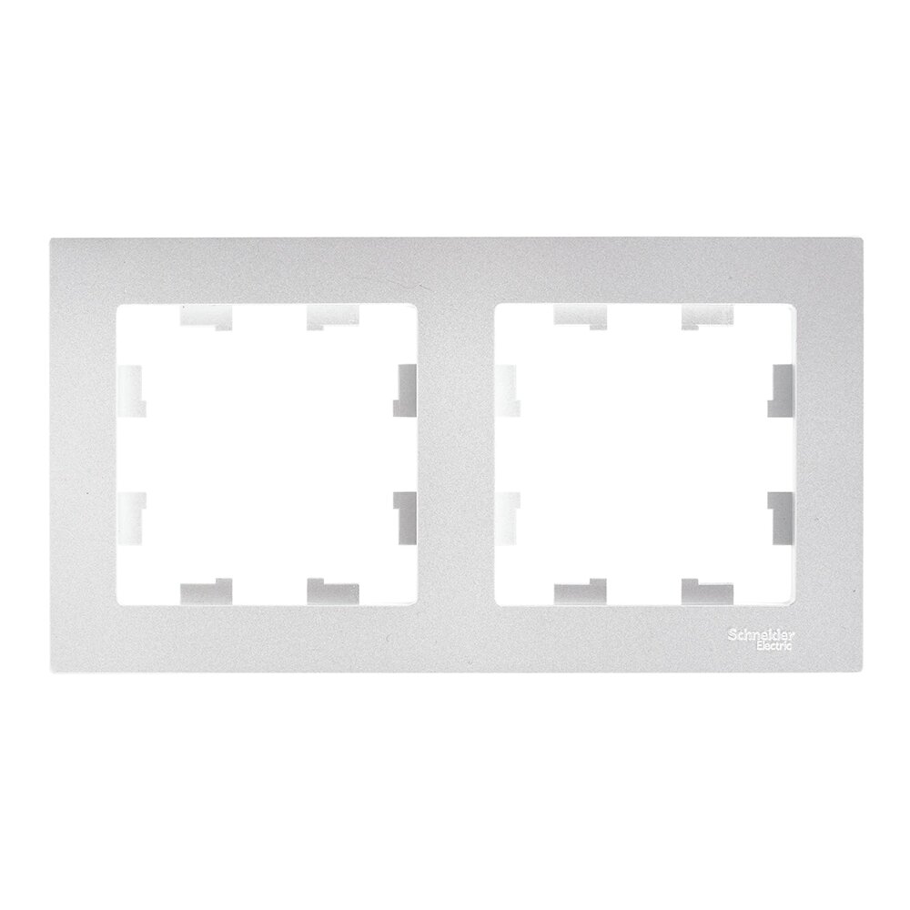 Рамка для розеток и выключателей двухпостовая (Алюминий), Schneider Electric AtlasDesign (комплект 3шт)