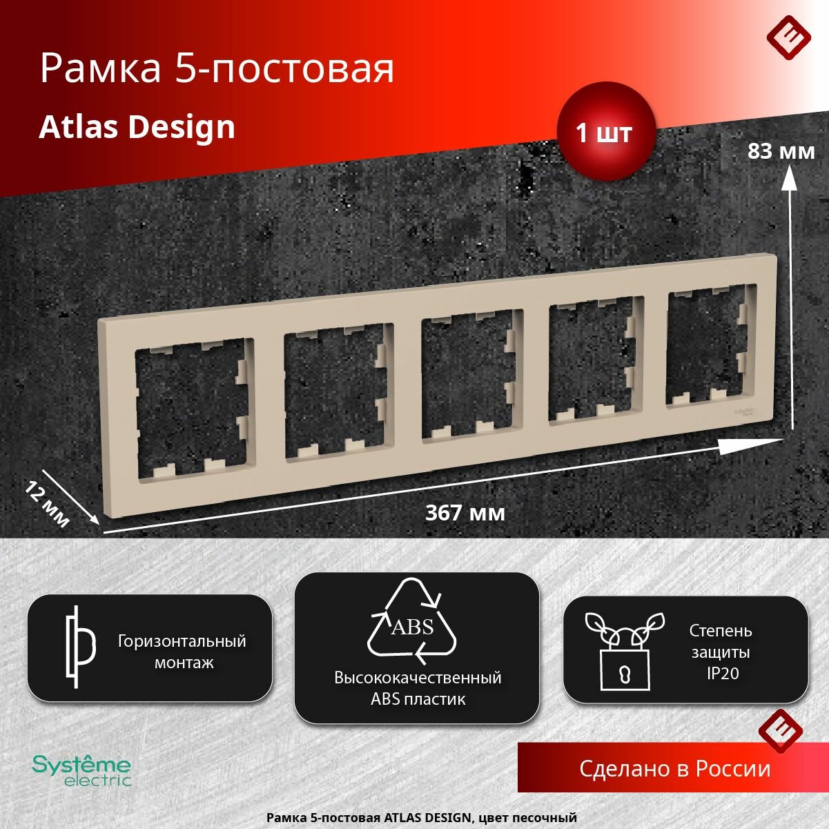 Ниже Вы можете прочитать отзывы на Systeme Electric AtlasDesign Песочный Рамка 5-ая, универсальная ATN001205, ознакомится с подробными характеристиками, посмотреть интересные обзоры и фотографии на Systeme Electric AtlasDesign Песочный Рамка 5-ая, универсальная ATN001205.
