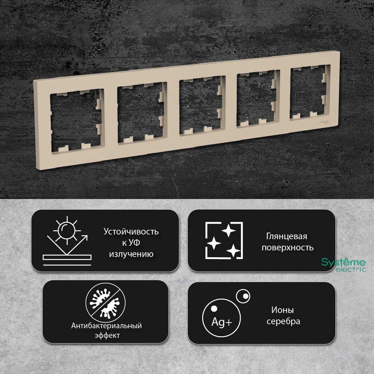 Купить Systeme Electric AtlasDesign Песочный Рамка 5-ая, универсальная ATN001205
