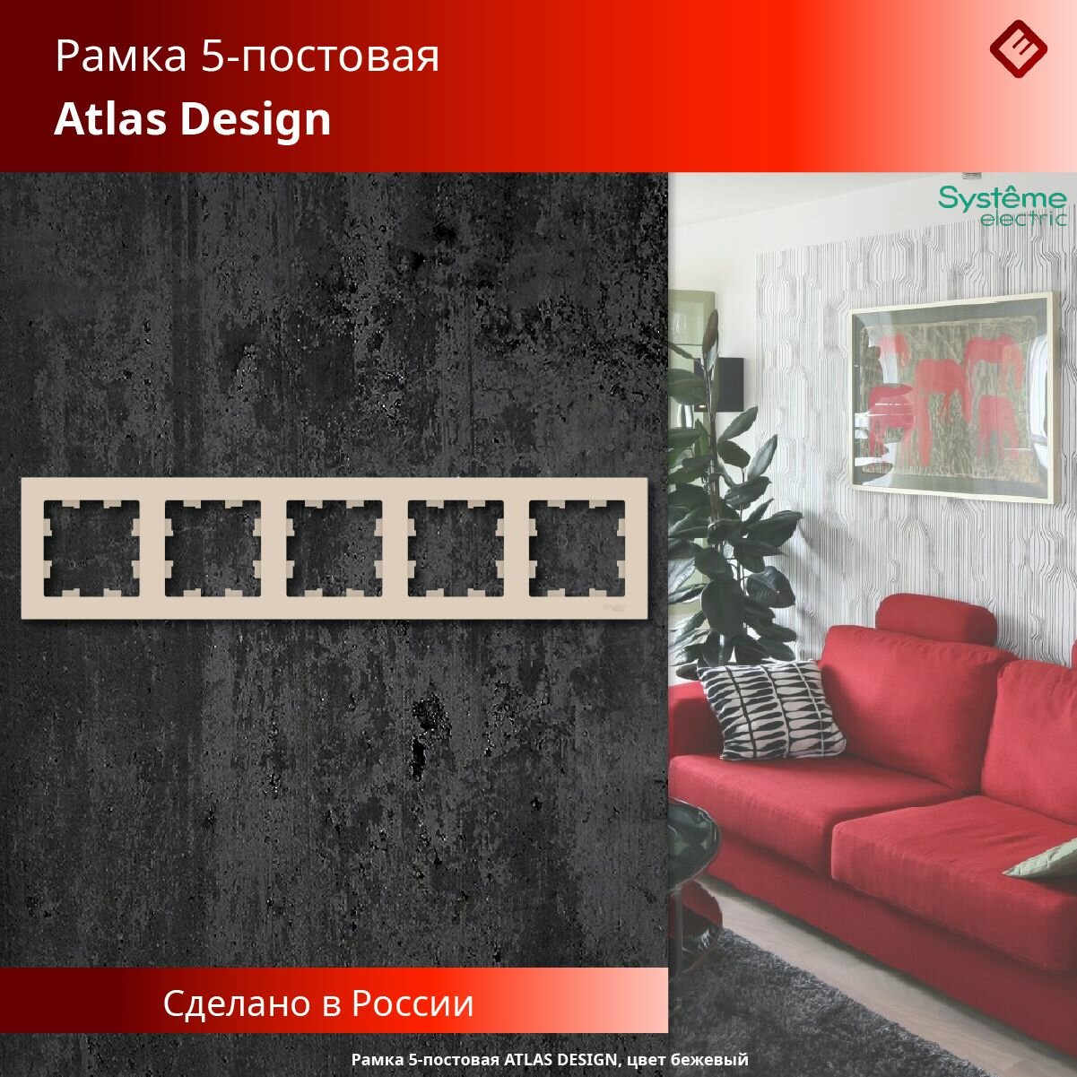 Рамка Systeme Electric Atlas Design пятиместная для розеток и выключателей бежевый - 4 шт.