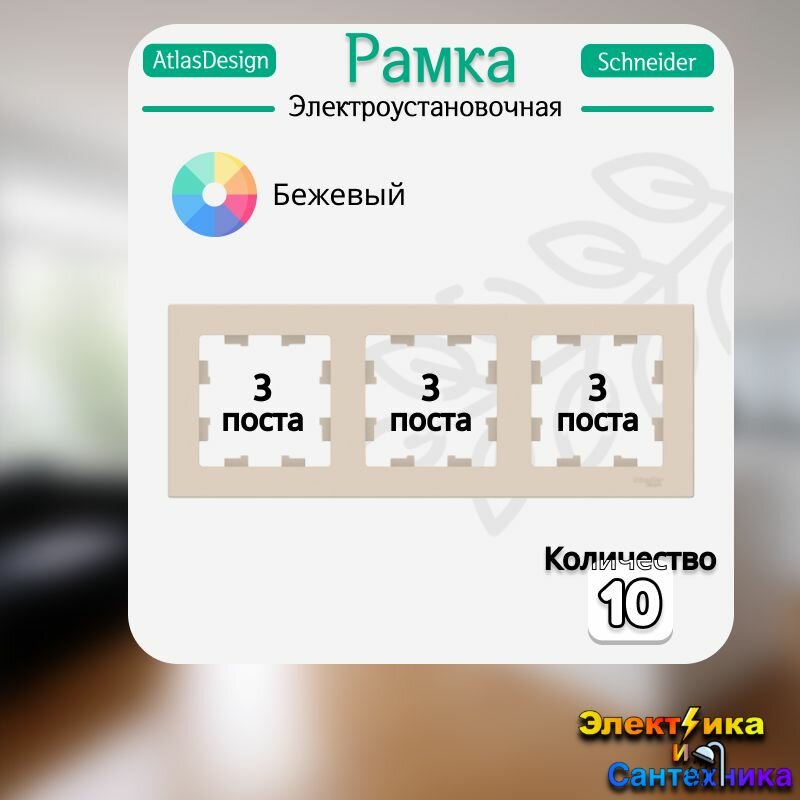 Купить Рамка трехпостовая универсальная Systeme Electric AtlasDesign песочный ATN001203 (комплект из 10шт.)