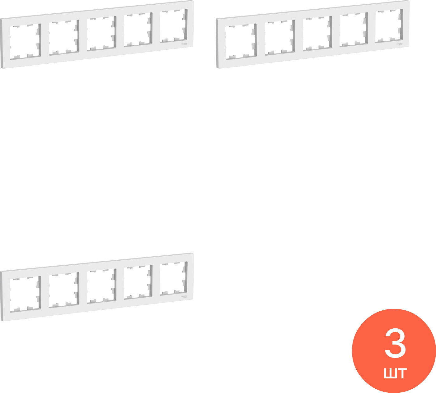 Купить Рамка электроустановочная Systeme Electric / Систем Электрик AtlasDesign ATN000105 универсальная белая, 5 постов / для розеток и выключателей / электроустановочное изделие (комплект из 3 шт)
