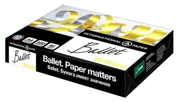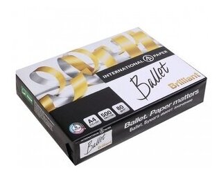 Бумага офисная BALLET BRILLIANT, А4, 80 г/м2, 500 л., марка А, ColorLok, International Paper, белизна 168%, BALBR080X501