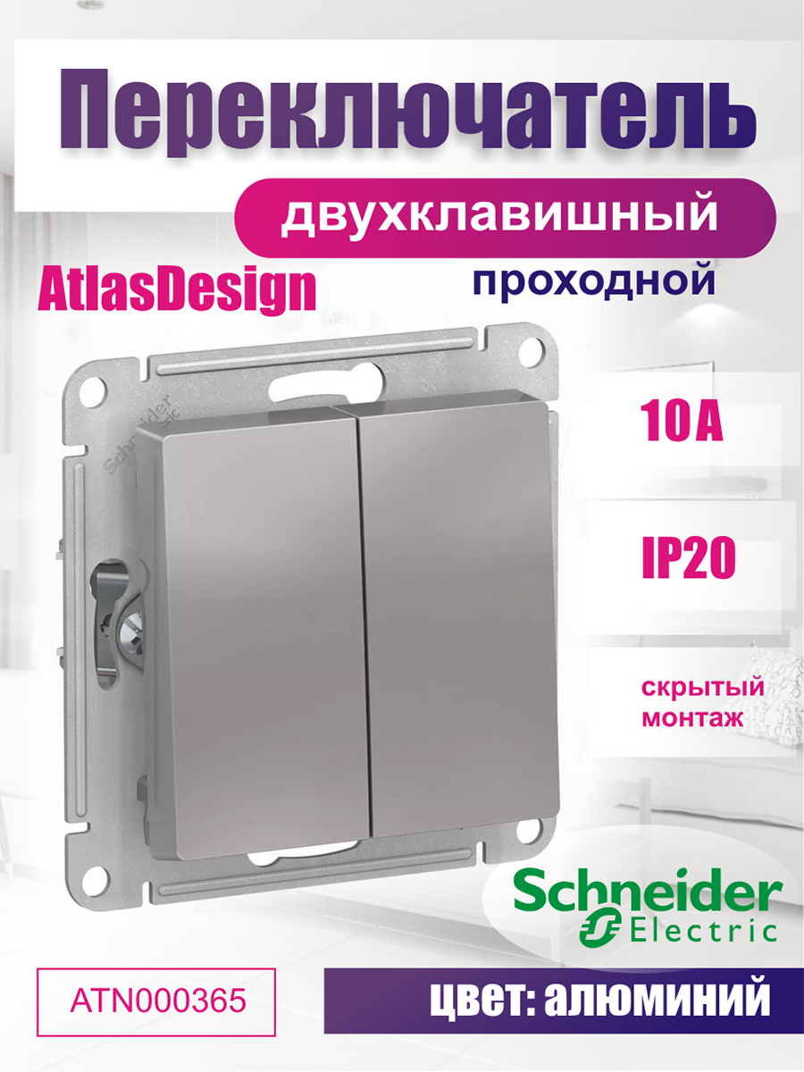 Переключатель Schneider Electric AtlasDesign, 2-клавишный, механизм, алюминий, ATN000365