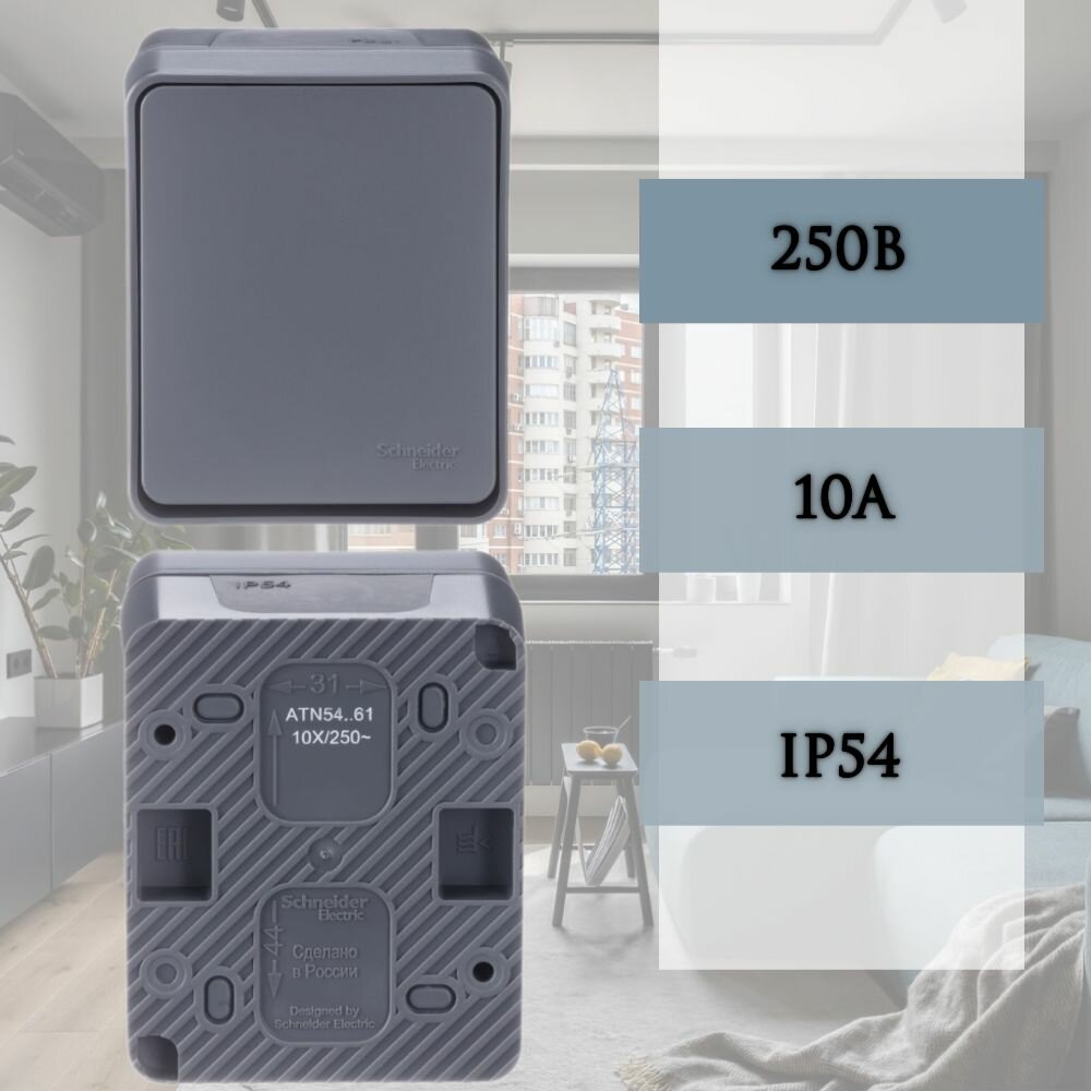 Влагозащищенный выключатель Schenider AtlasDesign Profi54 IP54 (Антрацит)
