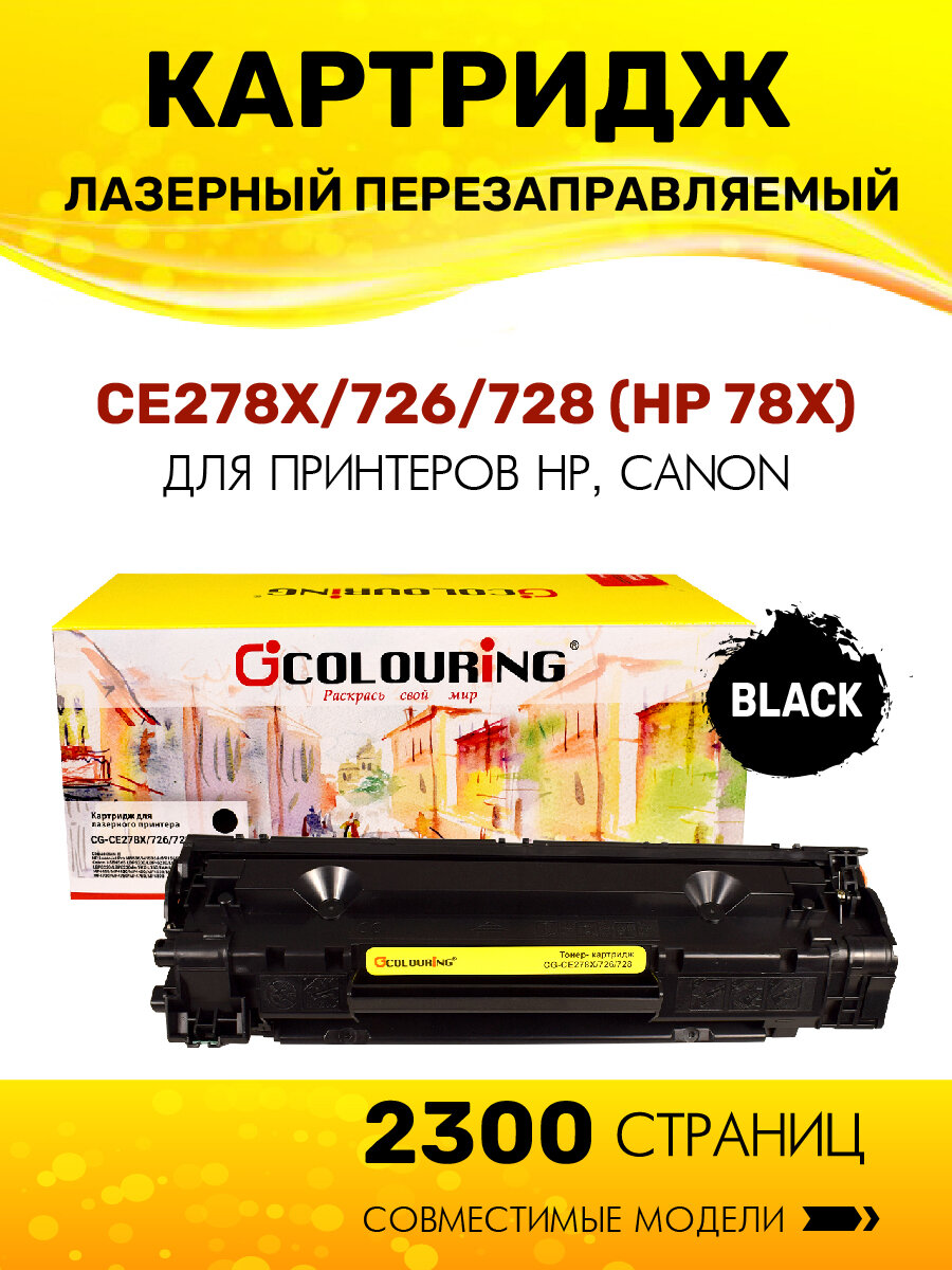 Купить Картридж Colouring CE278X/726/728 (HP 78X) для принтеров HP LaserJet Pro M1536/M1536dnf/P1566/P1606/P1606dn/Canon i-SENSYS LBP6200/LBP-6230/LBP6200/LBP6200d/LBP6230/LBP6230dw/FAX-L150/FAX-L170/FAX-L410/MF4410 и др. 2300 копий лазерный, совместимый