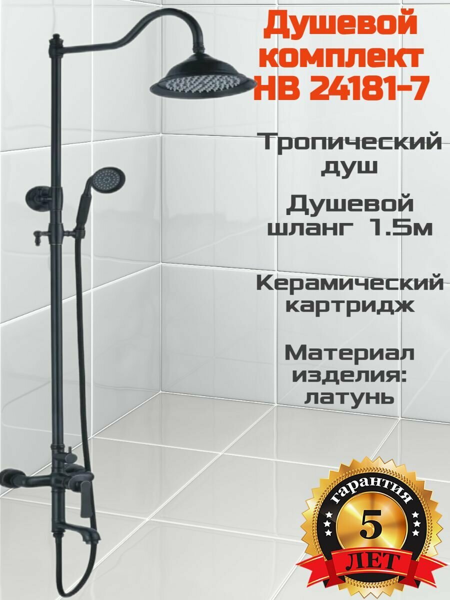 Система душевая, с верхней и ручной лейками, латунь, черный, Haiba(Китай), арт HB24181-7