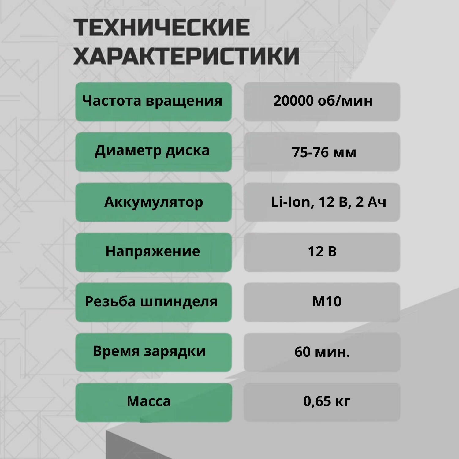Купить Шлифовальная машина угловая STATUS SH115E аккумуляторная (12В АКБ*2Ah+з.у)