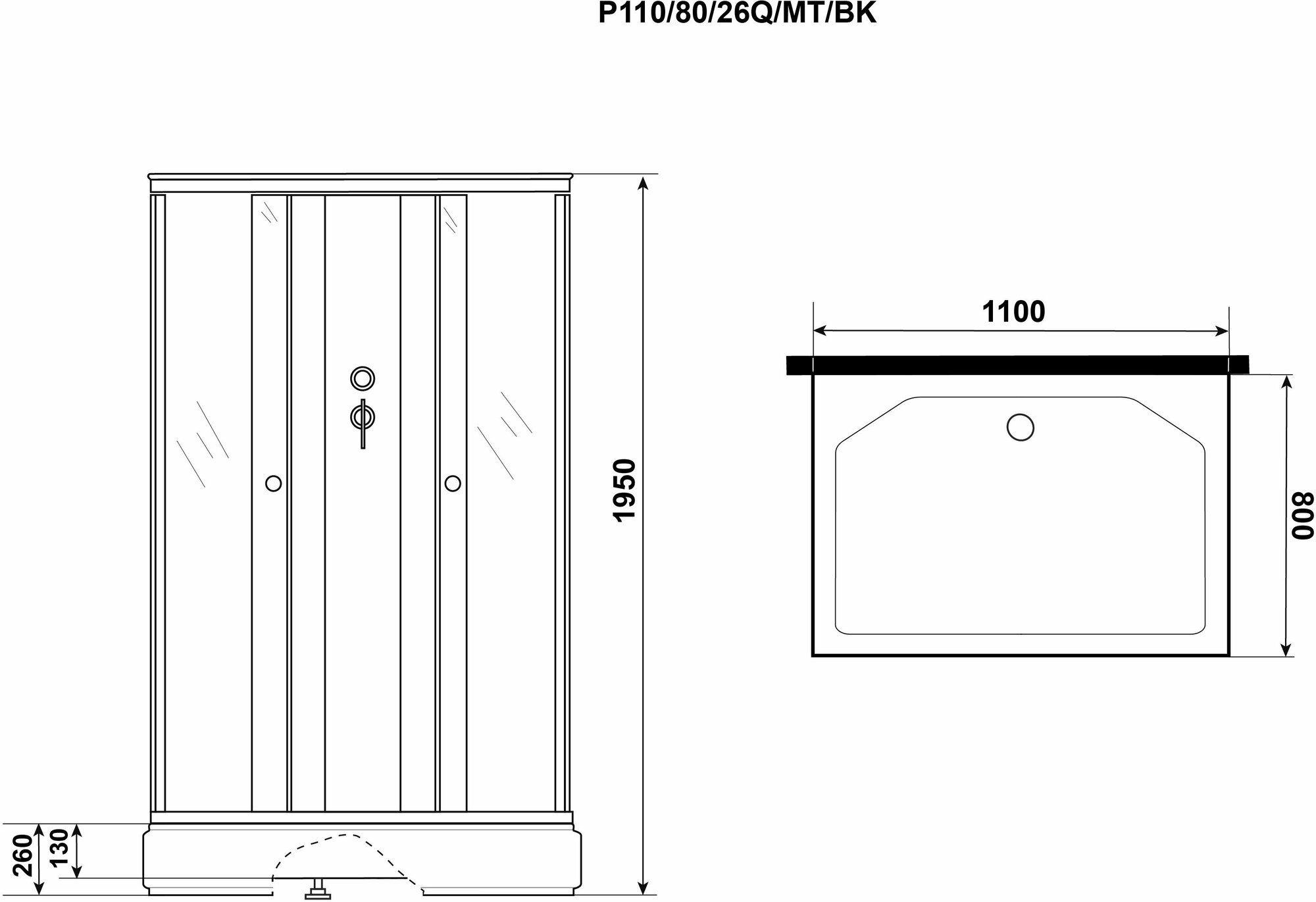 Душевая кабина Niagara Promo P110/80/40R/MT/BK (1100х800х1950)