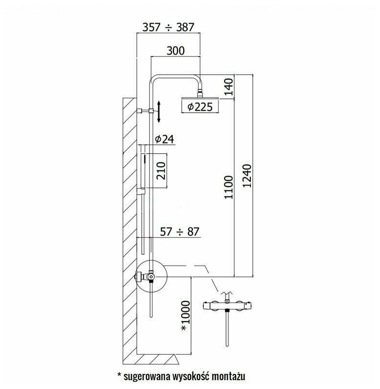 | Дополнительная информация | цвет черный матовый; высота стойки для душа: 1240 мм; диаметр верхнего душа: 225 мм |