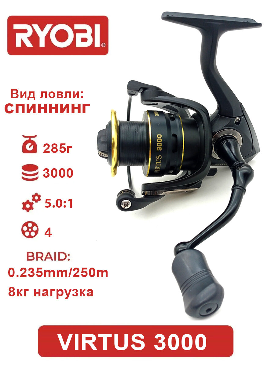 Купить Катушка спиннинговая безынерционная RYOBI Virtus 3000 / рыболовная / для спиннинговой ловли / летней рыбалки
