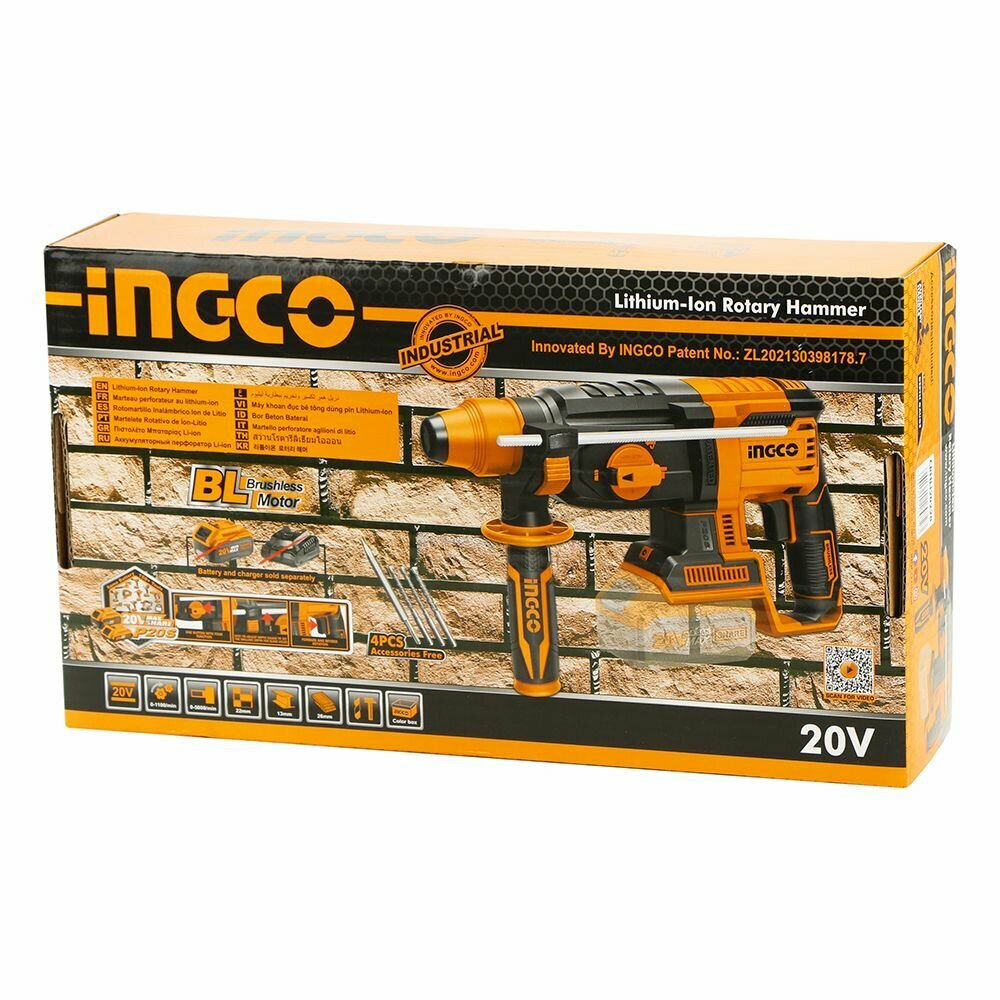 Аккумуляторный бесщеточный перфоратор SDS-Plus INGCO CRHLI20228 INDUSTRIAL 20 В 2 Дж