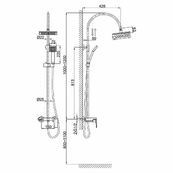 | Дополнительная информация | высота стойки для душа: 1200 мм; длина верхнего душа: 200 мм; ширина верхнего душа: 200 мм |
