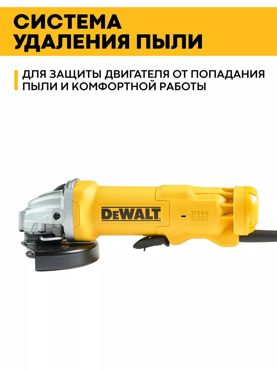 Угловая шлифмашина DEWALT DWE4057, 800Вт, 125мм, от сети, желтый
