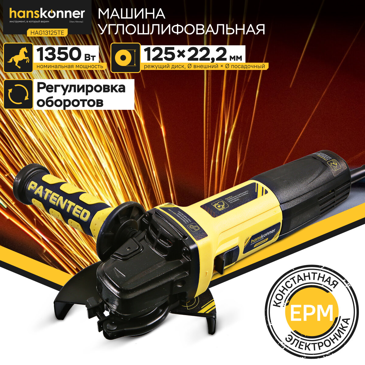 Машина углошлифовальная Hanskonner (болгарка) 125 мм HAG 13125 TE 1350 вт