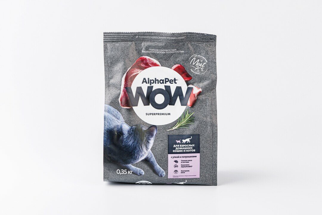 Купить Сухой корм Alphapet Superpremium Wow для взрослых домашних кошек с уткой и потрошками, 350 гр
