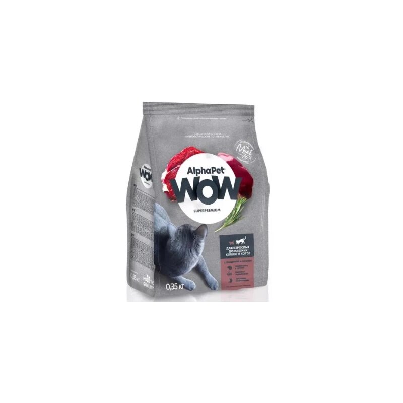 ALPHAPET WOW SUPERPREMIUM сухой корм для взрослых домашних кошек и котов c говядиной и печенью 350г х 1 шт