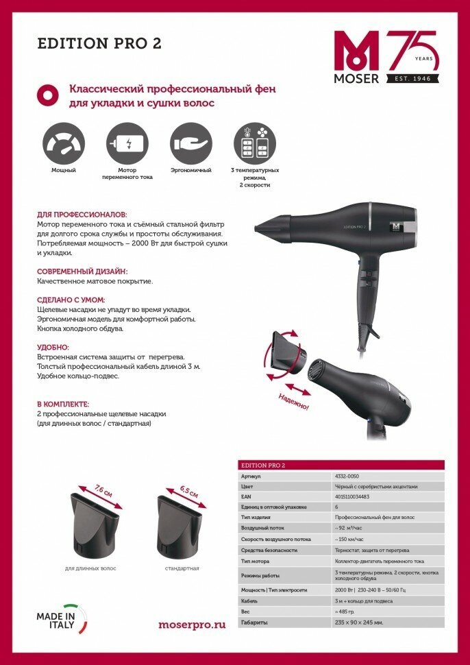 [52781] Фен Moser Edition Pro 2 2000 watt, 52781 (1 шт) интересное: