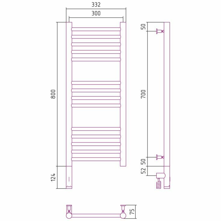 Электрический полотенцесушитель Сунержа Богема 3.0 прямая 800х300 лтэн без покрытия