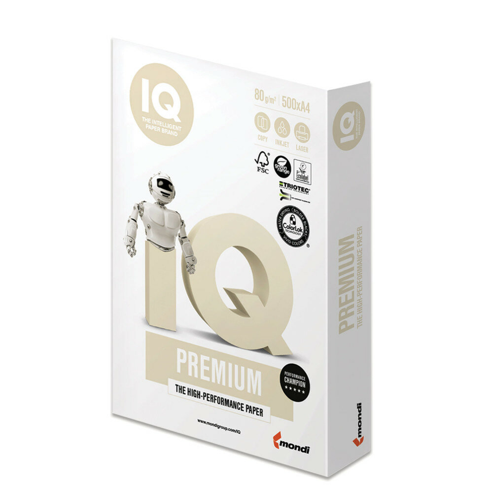 Бумага IQ Premium (A4, 80г/м², белизна 169% CIE, 500 листов)