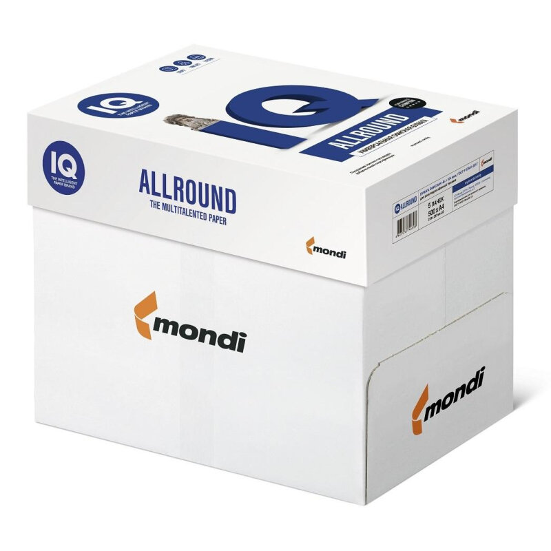 Бумага офисная А4, класс "В", IQ ALLROUND, 80 г/м2, 500 л., Mondi, белизна 162% (CIE) 110700