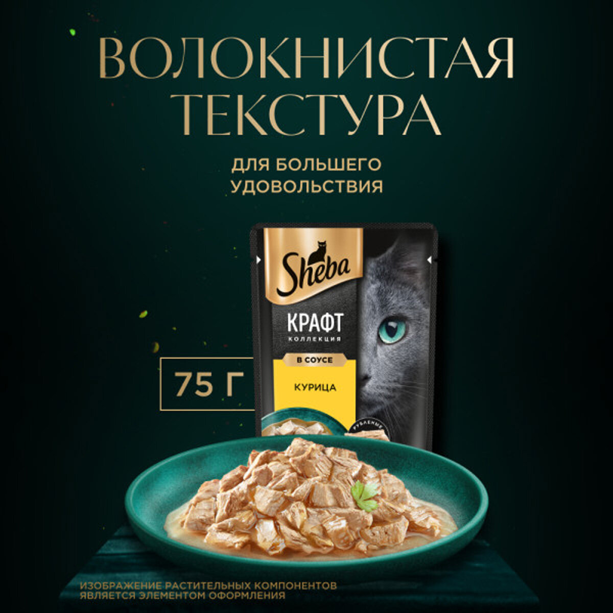 Влажный корм Sheba Craft для кошек, курица, соус, пауч, 75 г