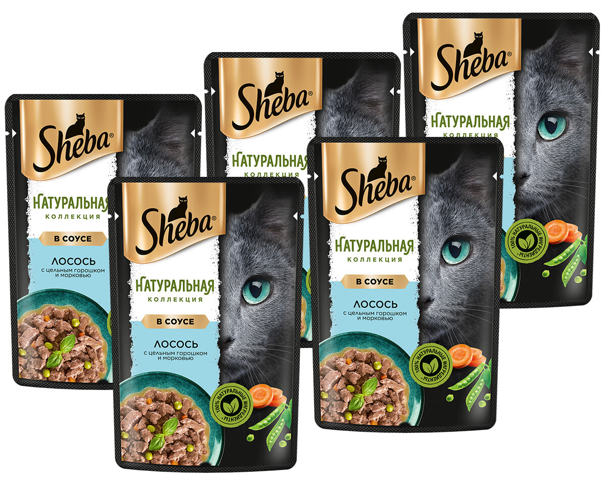 Купить SHEBA NATURES для взрослых кошек с лососем и цельным горошком в соусе пауч 75 гр х 5 шт