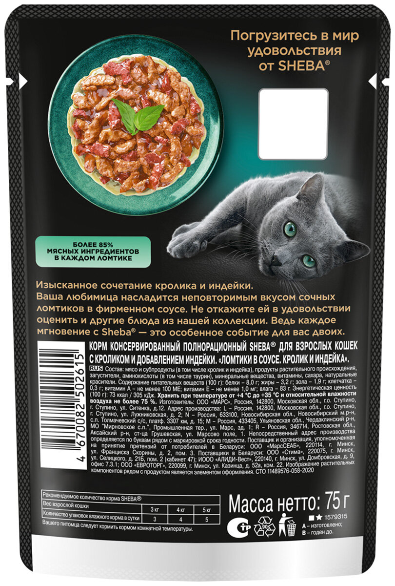 Купить SHEBA для взрослых кошек ломтики в соусе с кроликом и индейкой пауч 75 гр х 10 шт