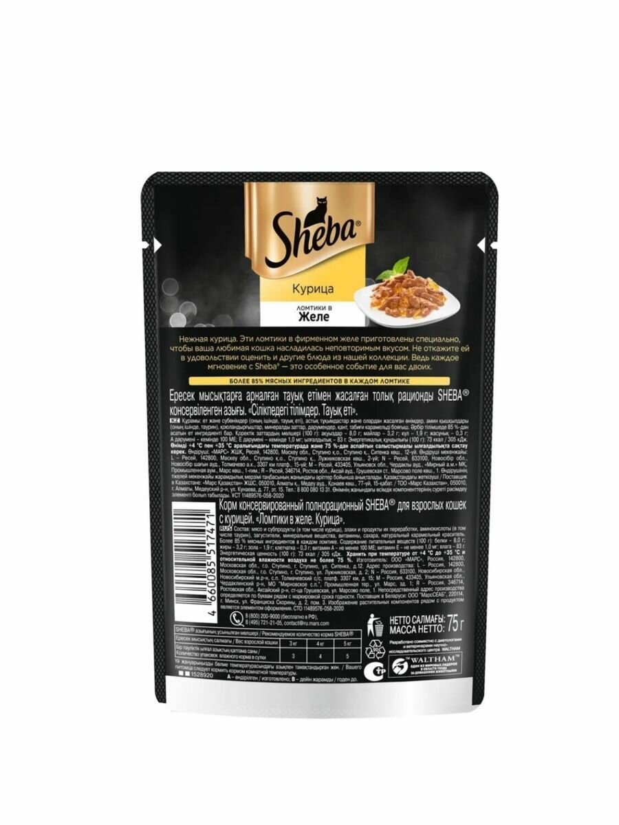 Корм влажный для кошек Шеба, "Sheba" нежный паштет в желе, с Курицей, 10х75 г