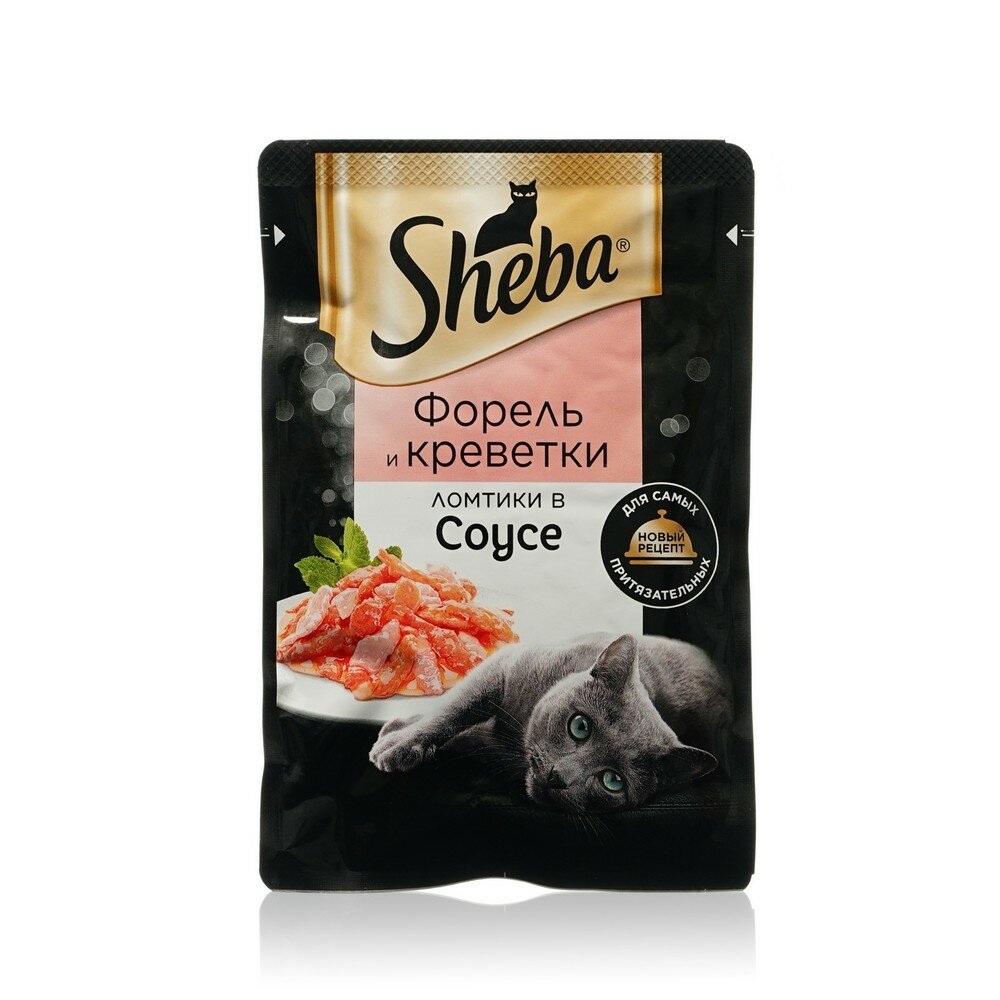 СохранитьКорм влажный для кошек Sheba, форель и креветки, ломтики в соусе, 75 г интересное: