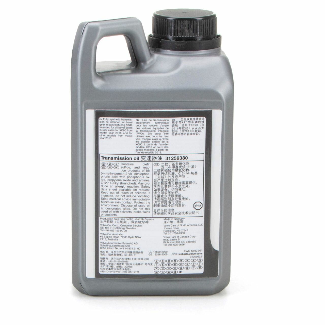 VOLVO 31 259 380 Масло трансмиссионное VOLVO AWD 75W-90 синтетическое 1 л 31 259 380