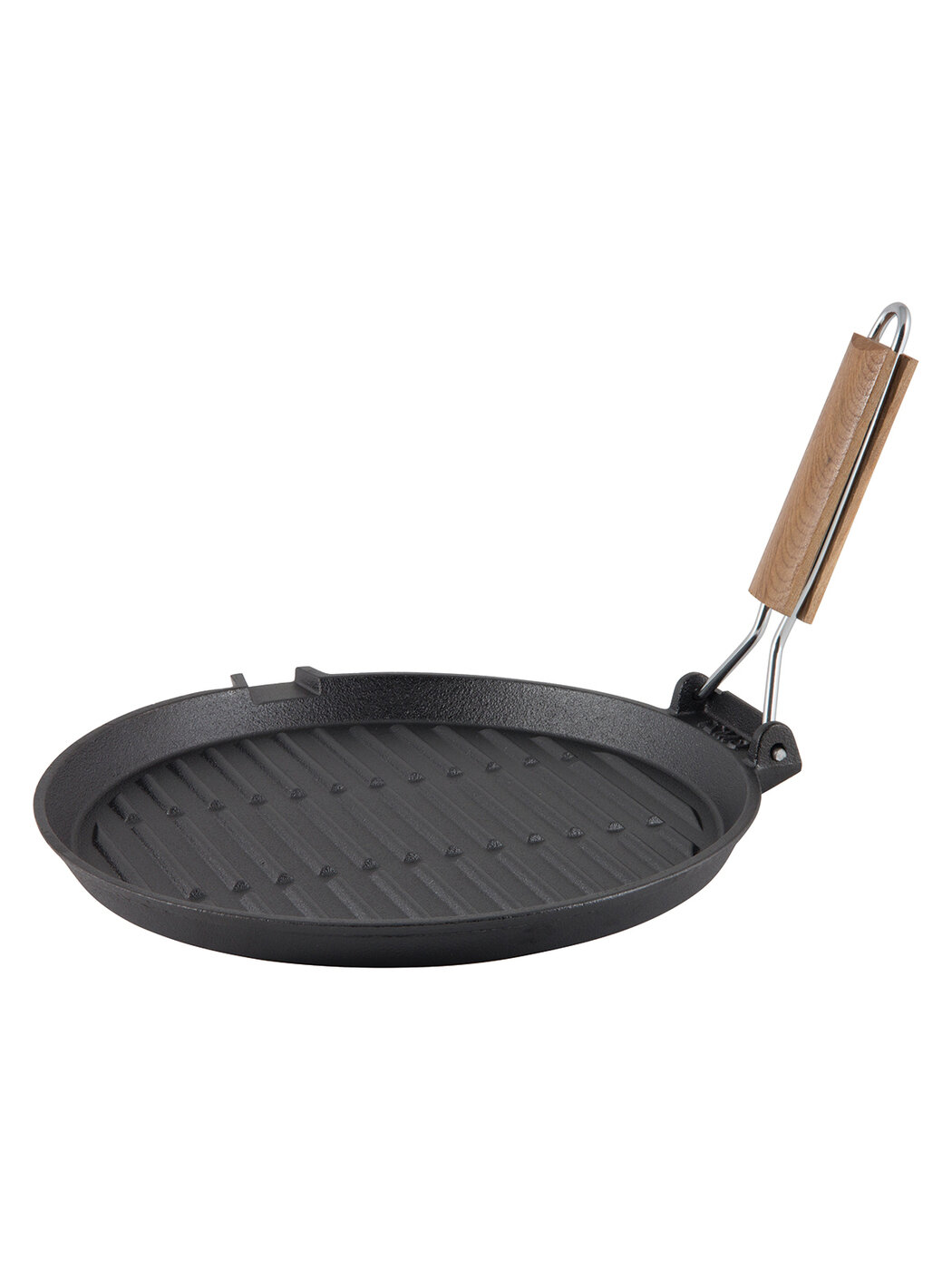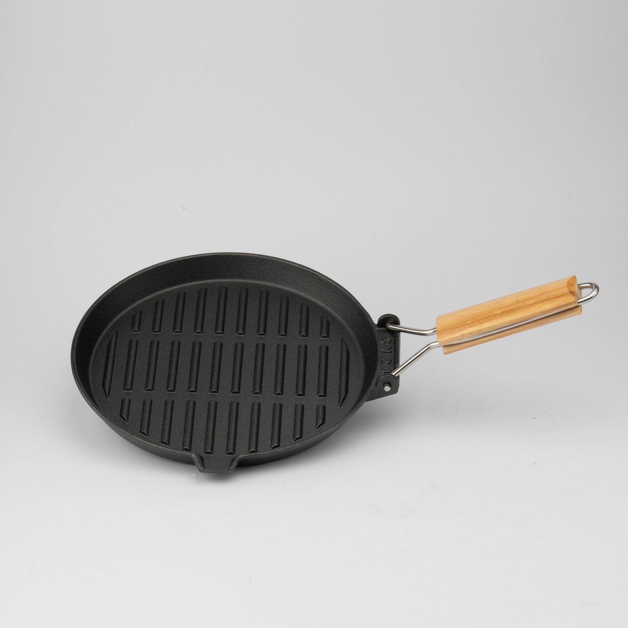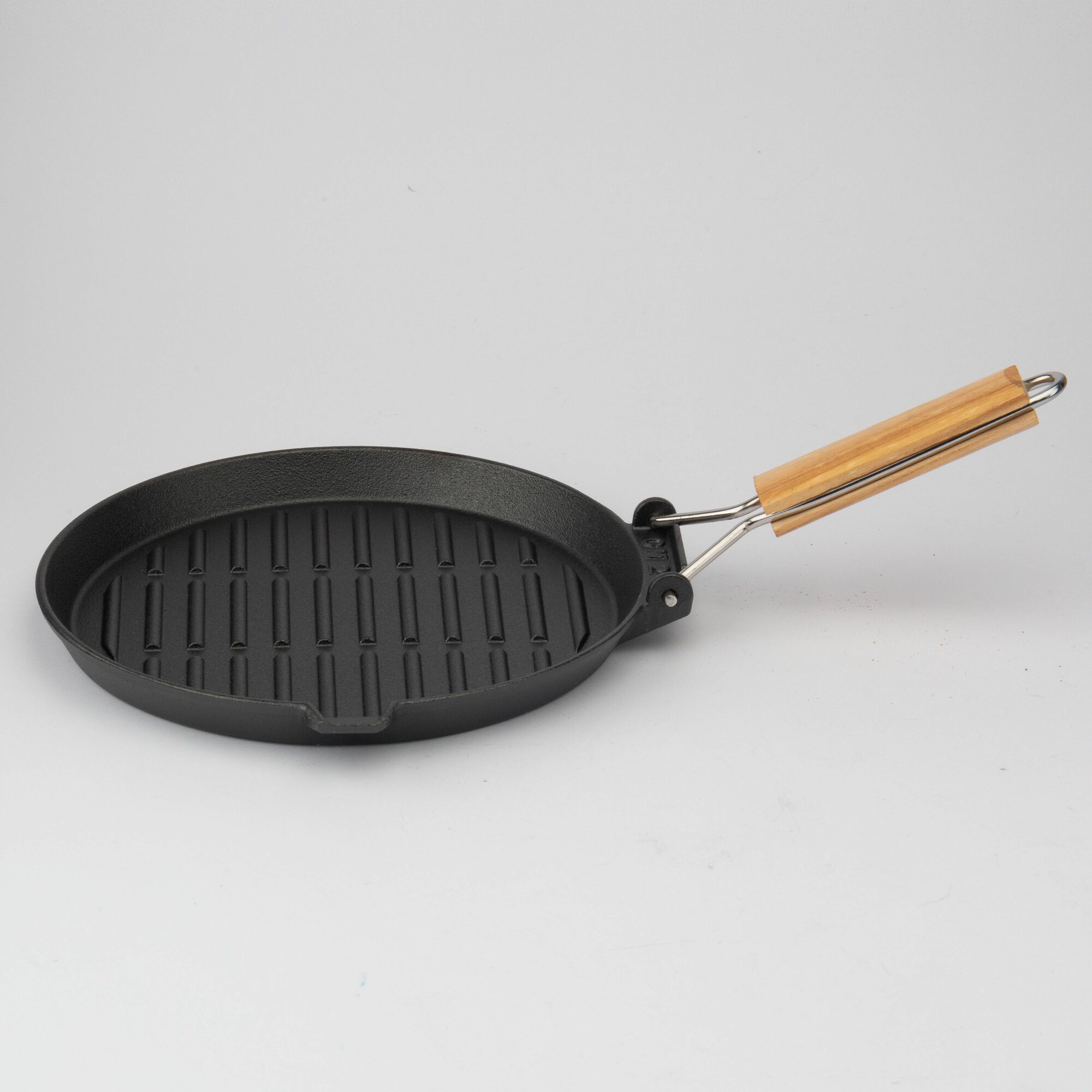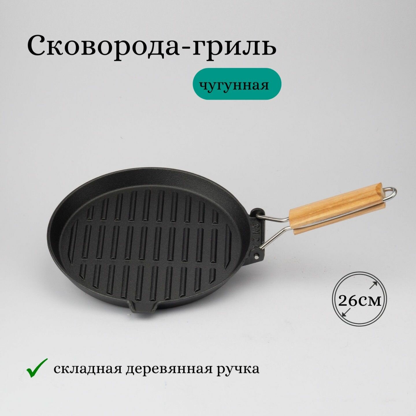 Купить Сковорода-гриль чугунная с деревянной складной ручкой, круглая, диаметр 26 см