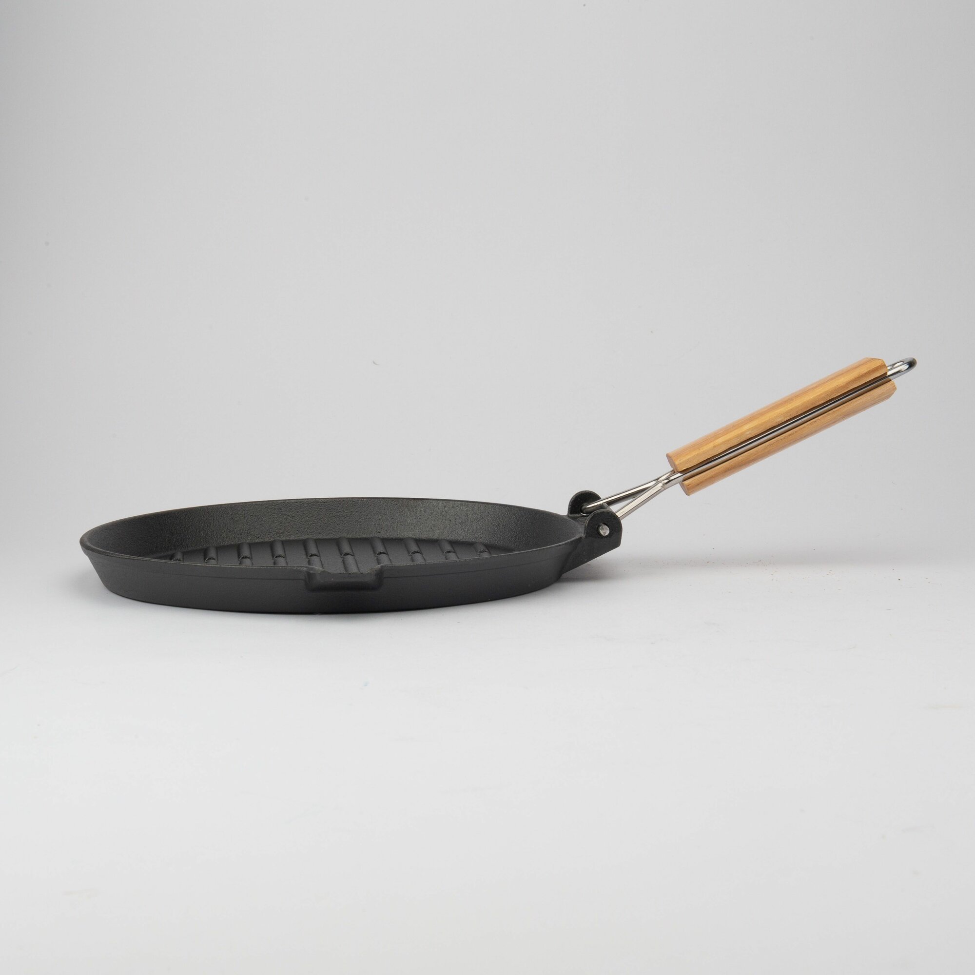 Сковорода-гриль чугунная с деревянной складной ручкой, круглая, PADELLA, диа 26 см
